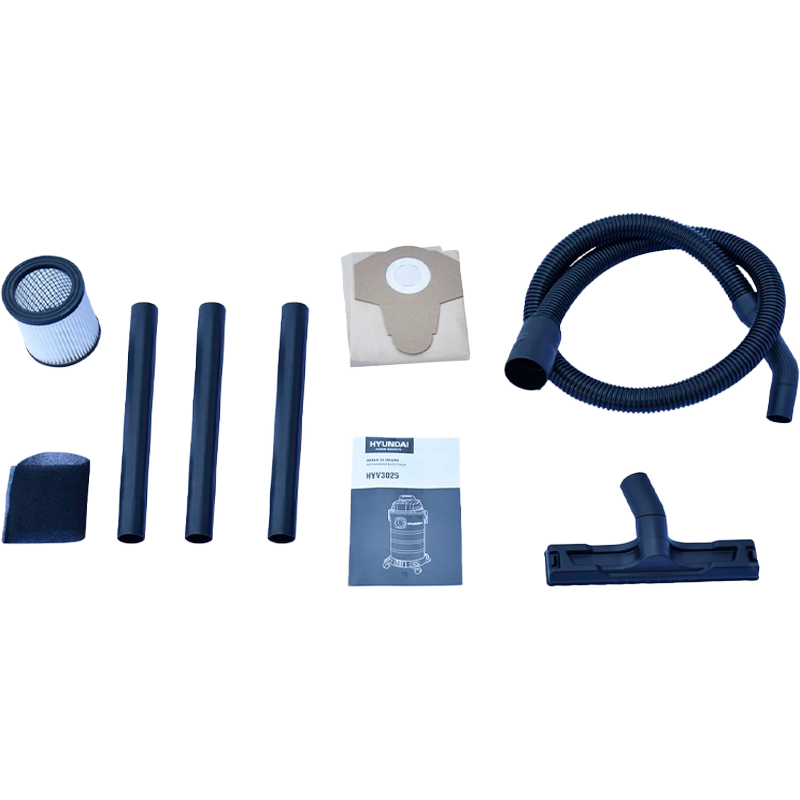 Incluye: 3 tubos extensores, 1 bolsa recolectora de polvos, 1 filtro de esponja, 1 manguera de 1.5 metros, 1 boquilla para ranuras y 1 cepillo para suelos, húmedos y secos.