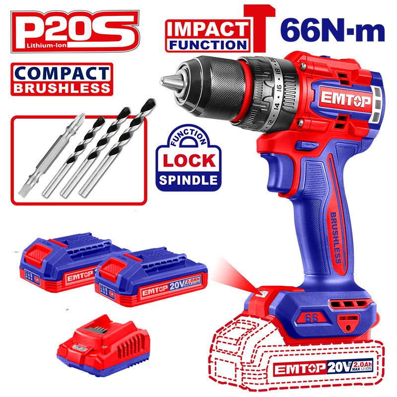 Barreno percutor inalámbrico de 1/2 plg, con baterías y cargador, Emtop, Ecidl206681