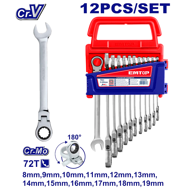 Juego de llaves articuladas ratch de 12 unidades milimétricas Emtop ECSS101203