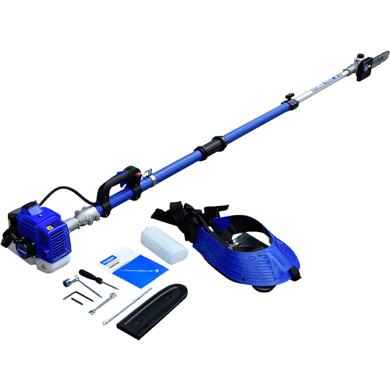 Motosierra Telescópica de Altura Profesional con motor de gasolina de 2 tiempos y potencia de 1 hp marca HYUNDAI.