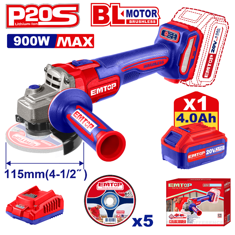 Esmeriladora inalámbrica de 4 1/2, 20 voltios, ULAG261521, Emtop