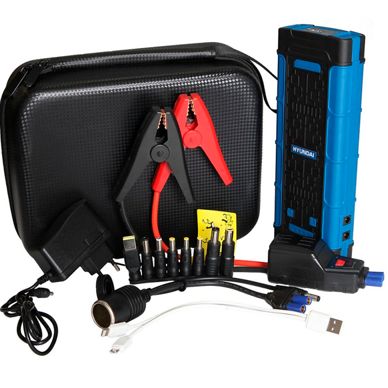 Tu respaldo confiable en cada viaje El arrancador HYUNDAI 600A te da potencia instantánea para encender tu auto en segundos. Con batería de litio, puertos USB y linterna LED, es perfecto para emergencias y aventuras. ¡Compacto, seguro y siempre listo