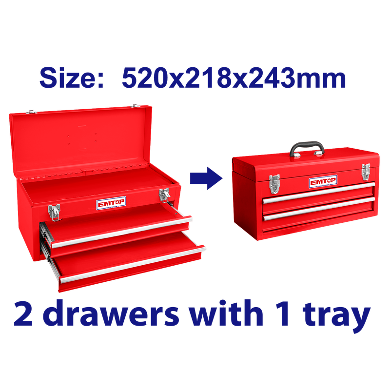 CAJA METALICA PARA HERRAMIENTAS CON 2 GABETAS. MARCA EMTOP