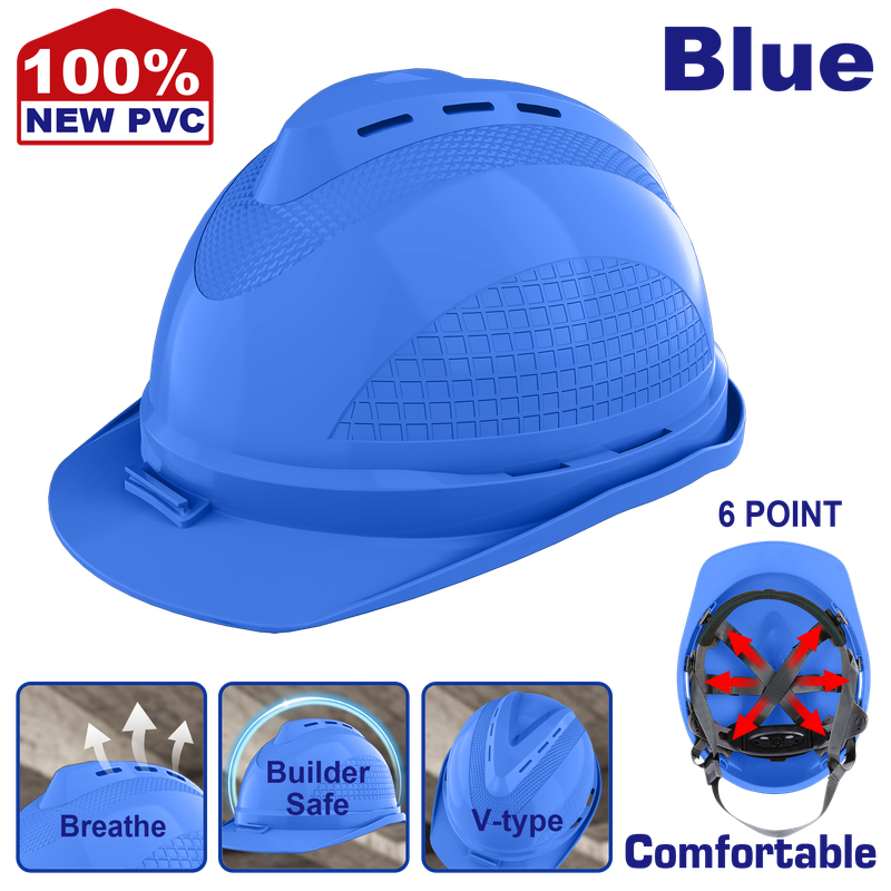 CASCO DE SEGURIDAD COLOR AZUL RANURAS DE VENTILACION REFUERZO SUPERIOR EN V. EMTOP