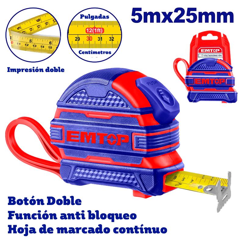 Cinta métrica de 5 mts x 25 mm Emtop EMTP2525