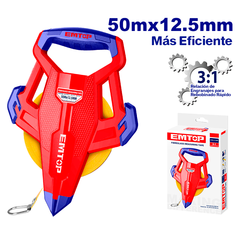 Cinta métrica de 50 mts x 12.5 mm Emtop EMTP85001