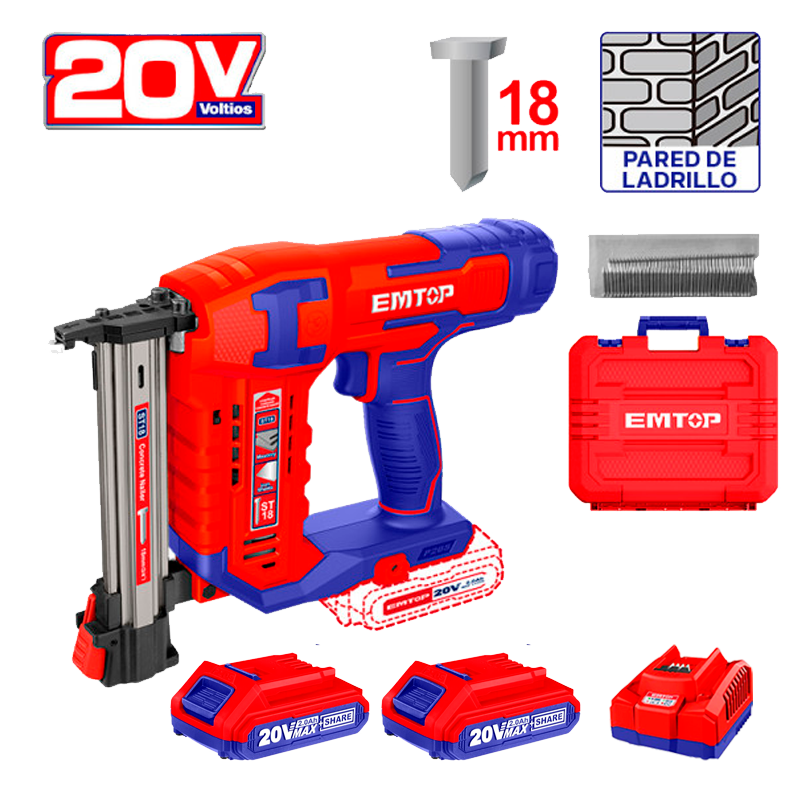 Clavadora inalámbrica para block y ladrillo con 2 baterías y cargador Emtop ELSTLI3805-ULBCPK