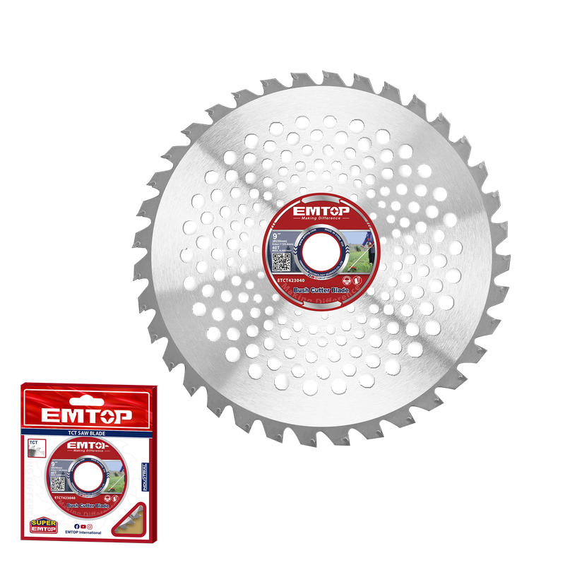 CUCHILLA PARA DESBROZADORA 9 PULGADAS 40 DIENTES EJE 25.4MM INCLUYE REDUCIDOR A 20MM. EMTOP