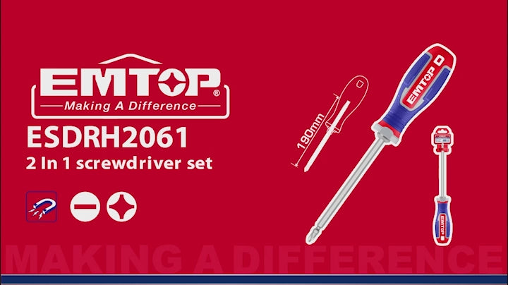 DESARMADOR 2 EN 1 DE PUNTA INTERCAMBIABLE DE 6 PULG, EMTOP, ESDRH2061