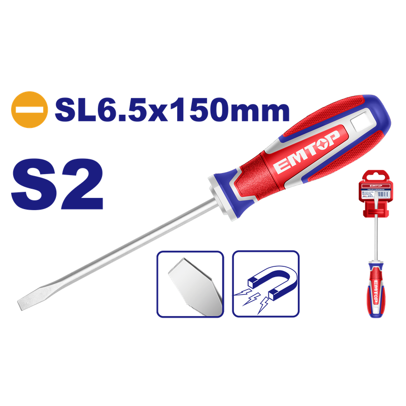 DESARMADOR PUNTA MAGNETICA PLANA 6.5 MM 6 PULGADAS DE LARGO. EMTOP