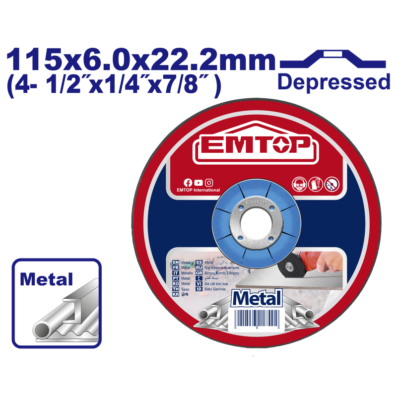 Disco abrasivo para desbastar metal de 4 1/2 plgs, EMTOP, EACD601151