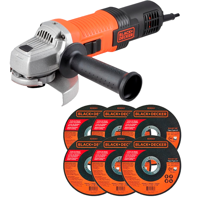 Esmeriladora de 4 1/2 plg con 6 discos Black and Decker G720X6D-B3
