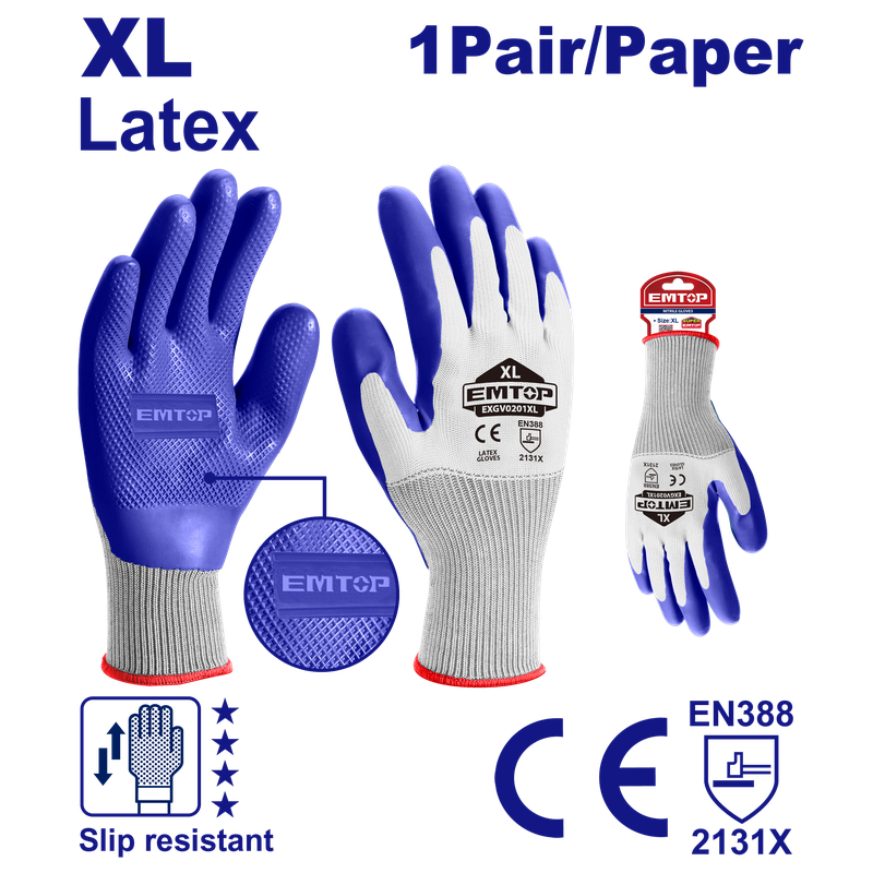 GUANTES DE LATEX CON REVESTIMIENTO DE POLIESTER TALLA XL USO EN CARGA PESADA OBJETOS PUNZANTES. MARCA EMTOP
