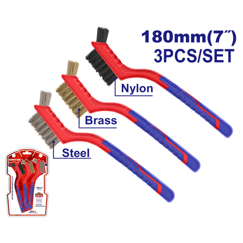 JUEGO DE 3 CEPILLOS PARA LIMPIEZA CERDAS DE NILON LATON Y ALAMBRE. EMTOP