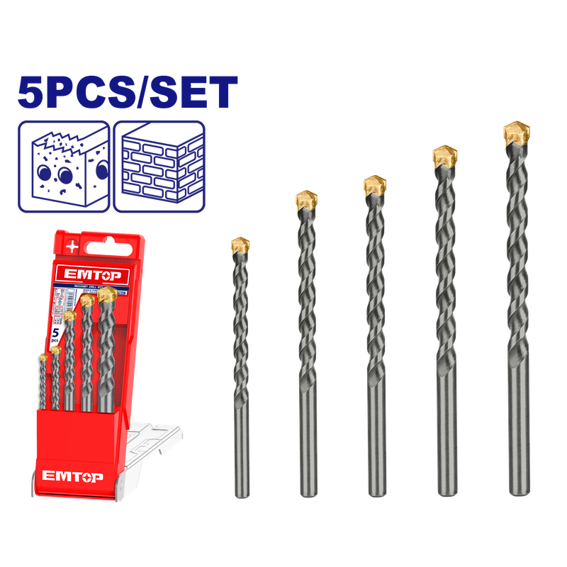 JUEGO DE 5 BROCAS PARA CONCRETO 5/32 3/16 1/4 5/16 Y 3/8. EMTOP
