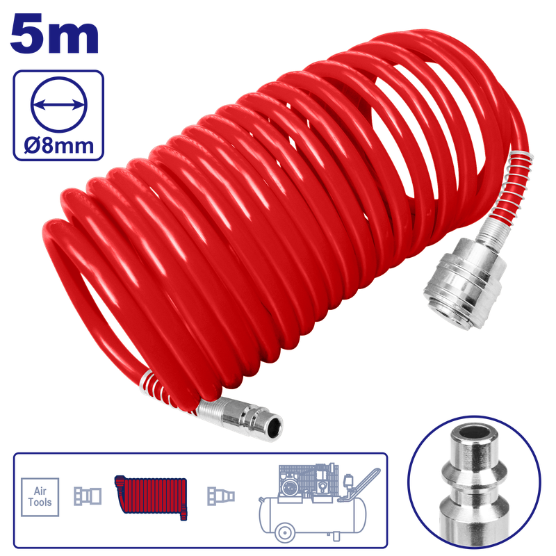 MANGUERA PARA COMPRESOR EXPANDIBLE CON CONECTORES LARGO 5 METROS. EMTOP