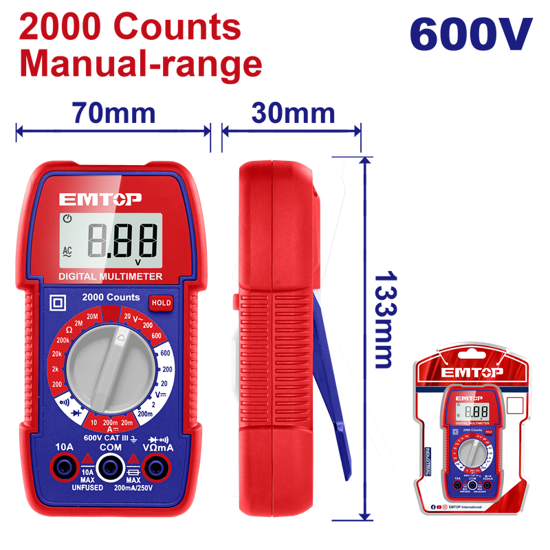 Multímetro digital de 600 voltios, Emtop, EDMR5360011
