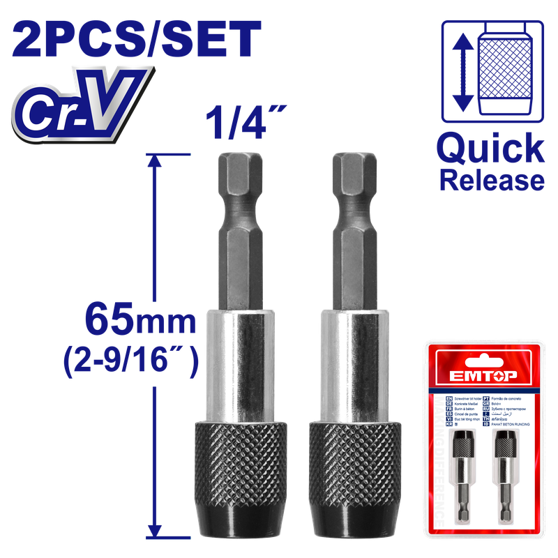 SET DE 2 EXTENSION / SUJETADOR DE PUNTAS 2-9/16 PULGADAS DE LARGO CON BLOQUEO. MARCA EMTOP