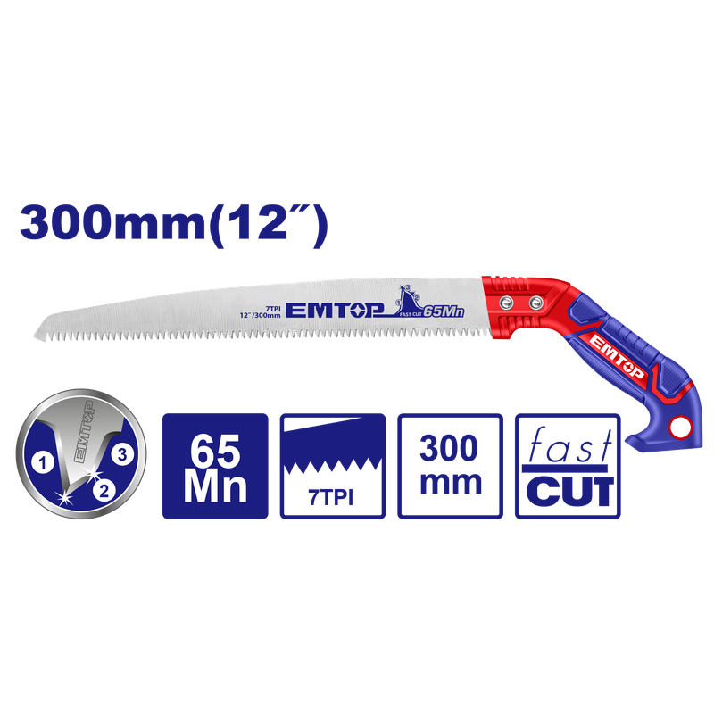 SIERRA DE PODAR DE 12 PULGADAS 7 TPI DIENTES CON TRATAMIENTO TERMICO, EMTOP