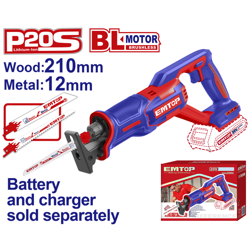 Sierra sable inalámbrica de 20 voltios, Emtop, ELRS202108